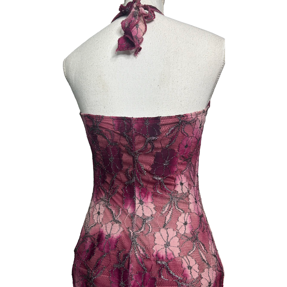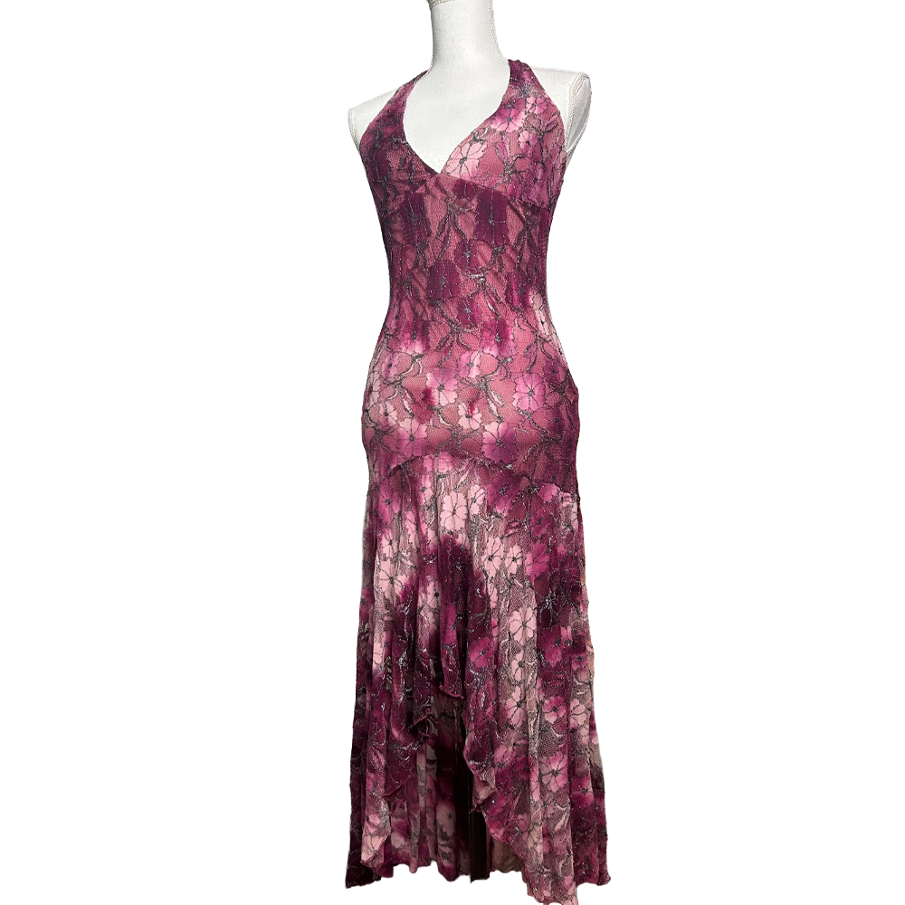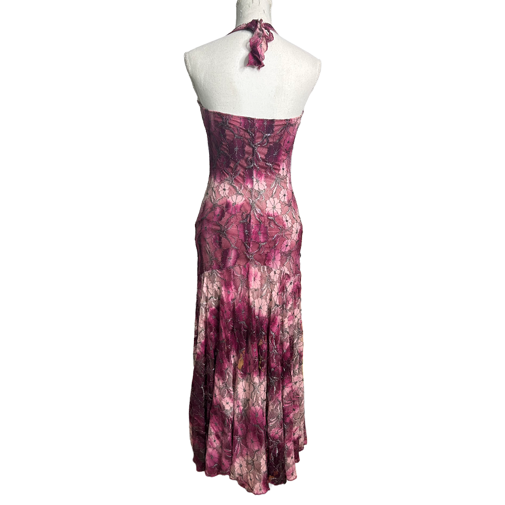Sublime Tie and Dye fuchsia/pink lace gown with metallic sheen vintage 2000s Made in SPAIN