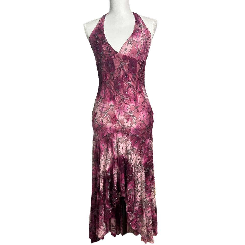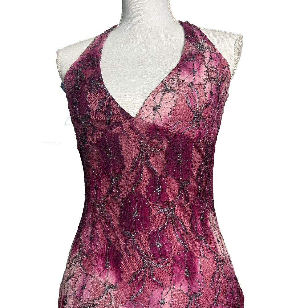 2000s vintage pink and fuchsia Tie and Dye lace dress