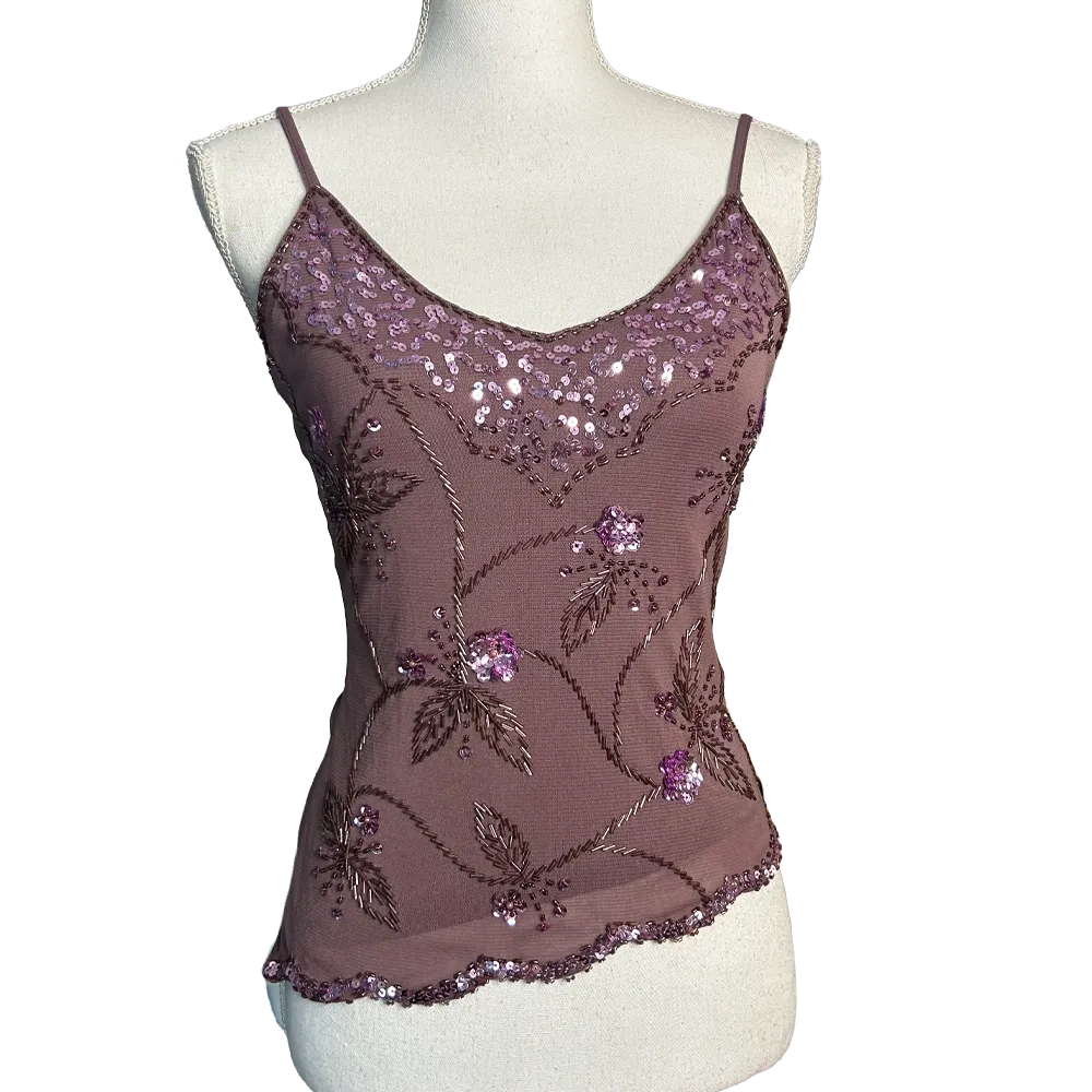 Fairycore Vintage 2000s asymmetrical parma top with floral sequins and beads