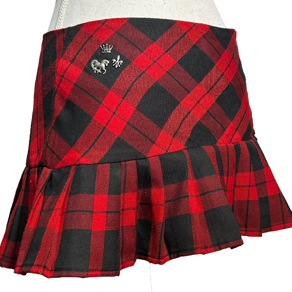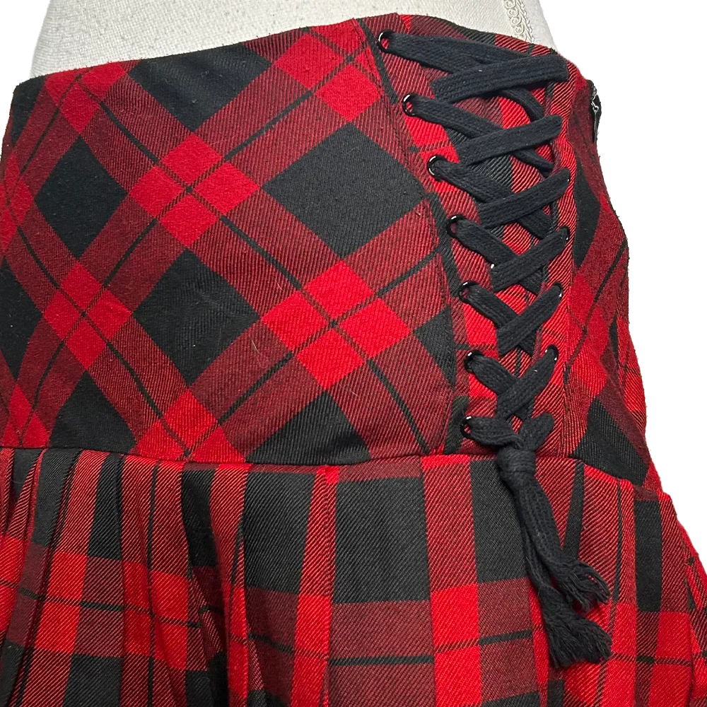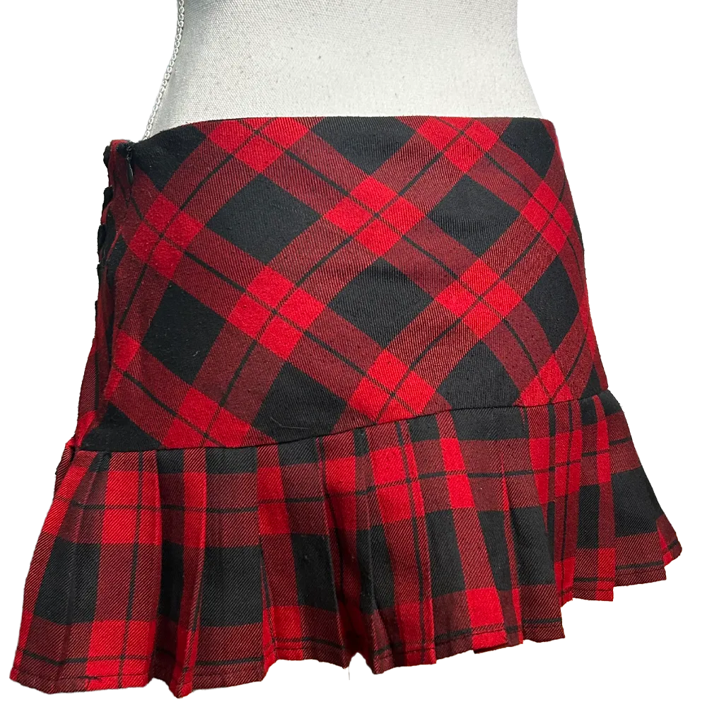 Red tartan pleated mini skirt with lacing Vintage 2000s
