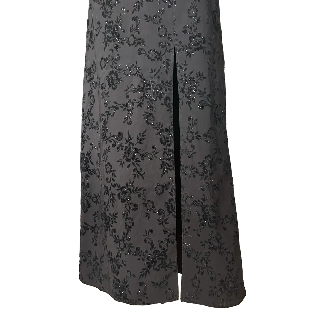 Prom dress noir fleuris pailletées et fente Goth années 90