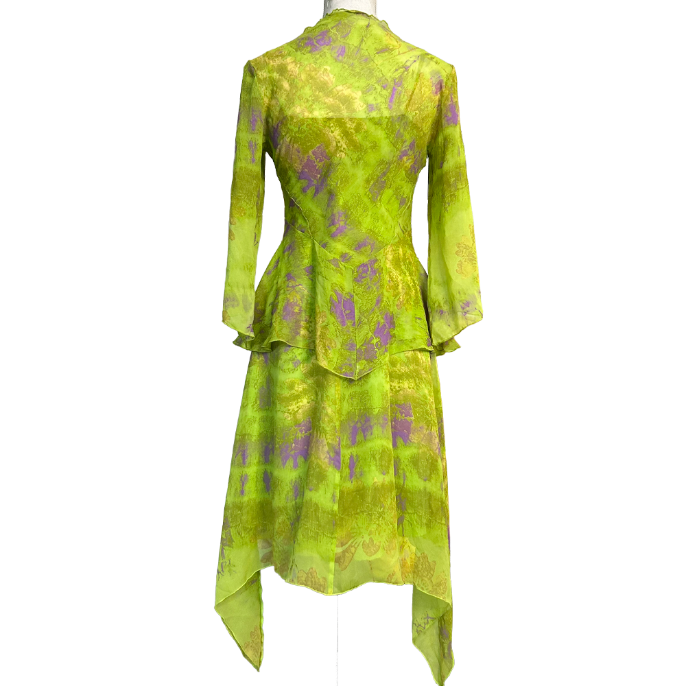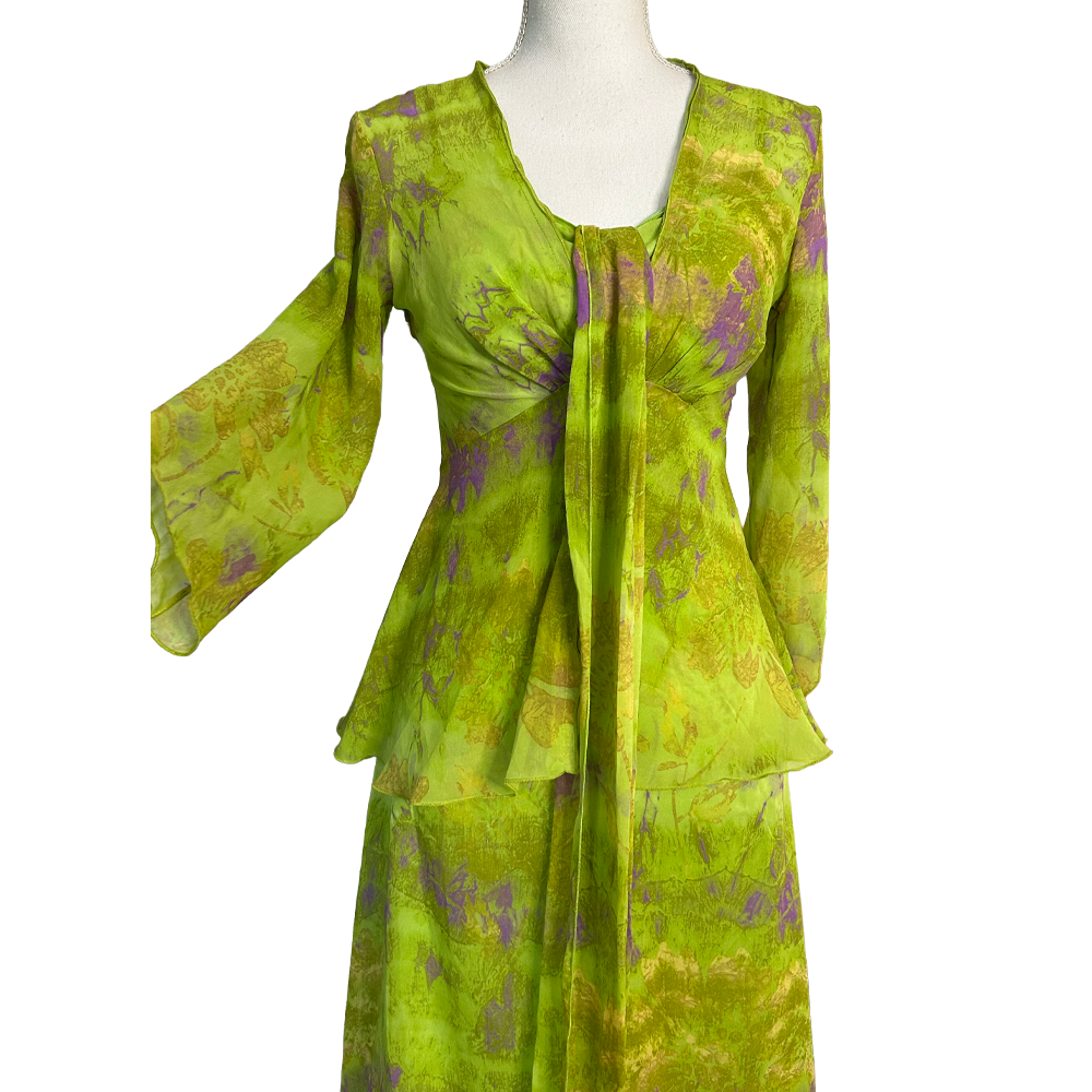 Mignonne petite robe verte et touche de violet à motifs floraux avec son boléro assorti vintage années 2000